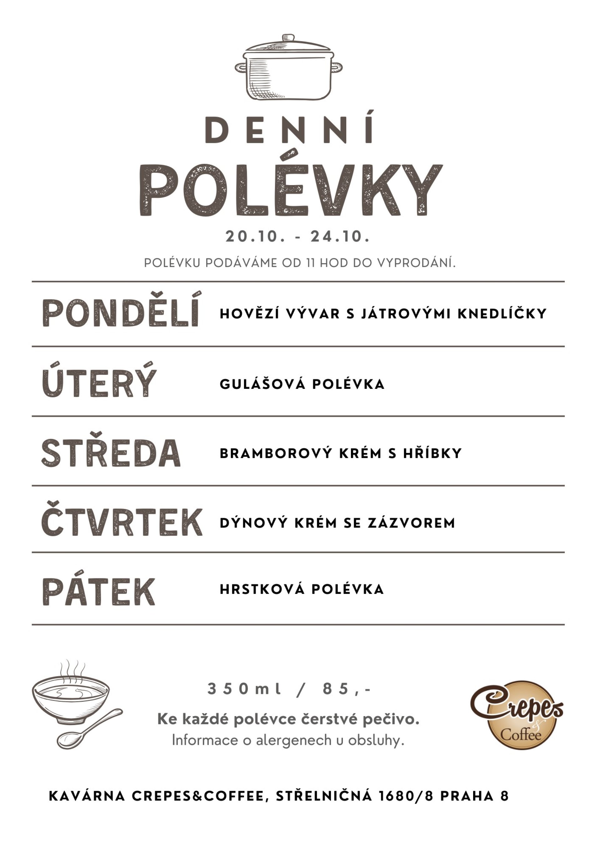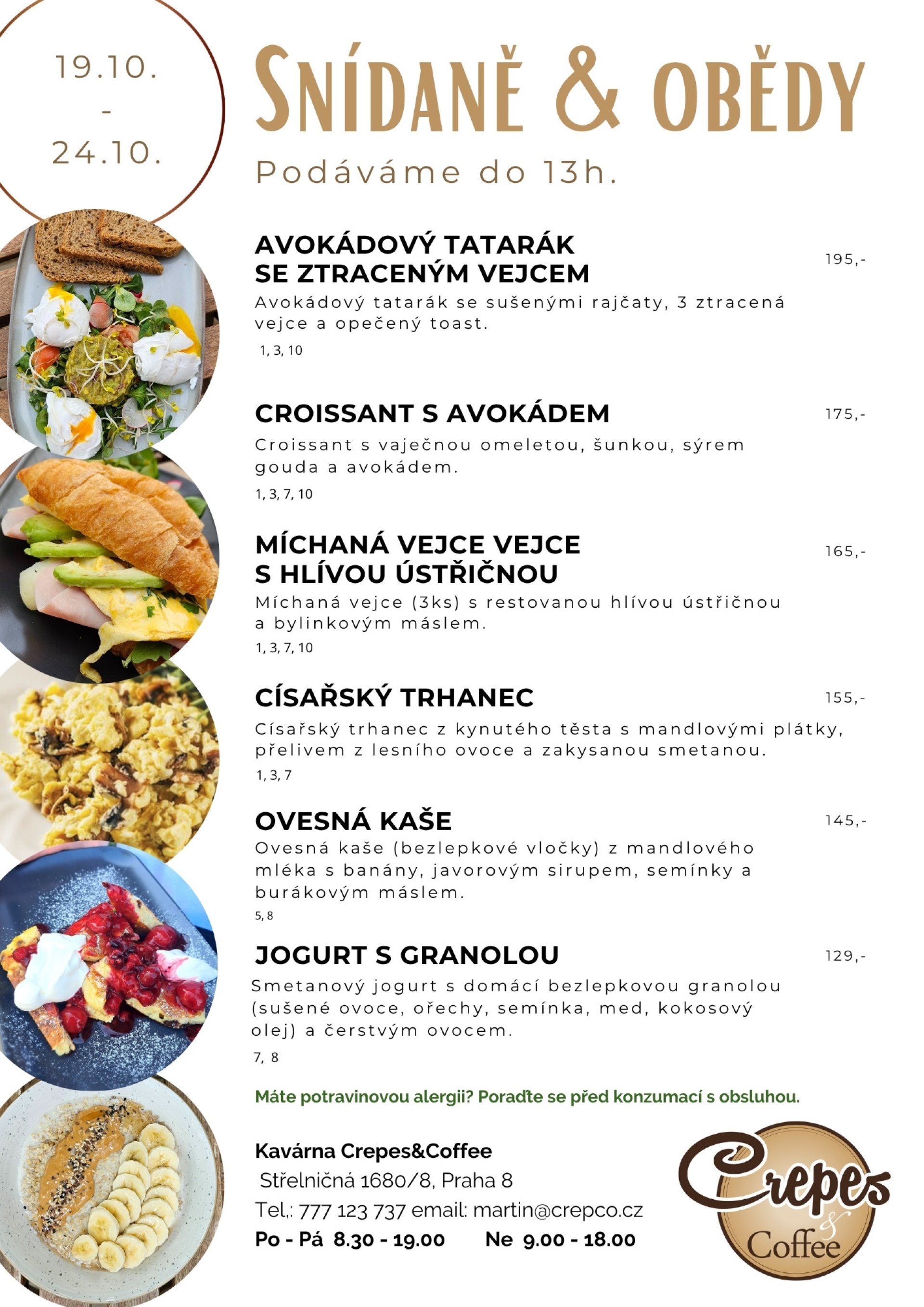 18.10. Sobota 08:34Každý týden pro vás připravujeme nové snídaňové menu včetně denní polévek.