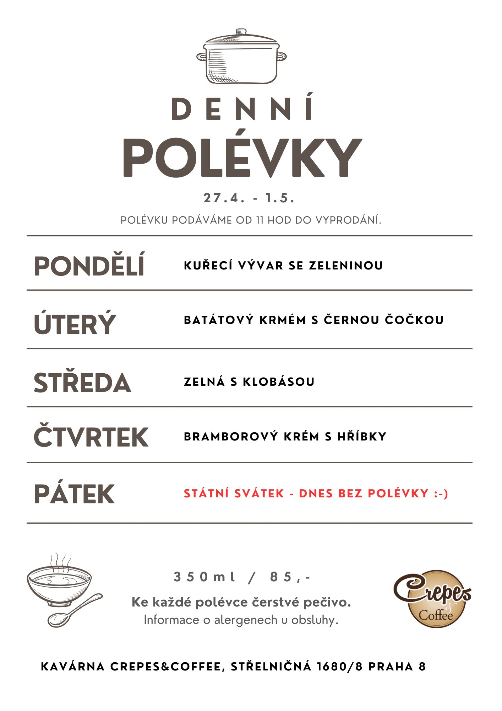 Snídaně, brunch, denní polévky 26.4. - 1.5.2026