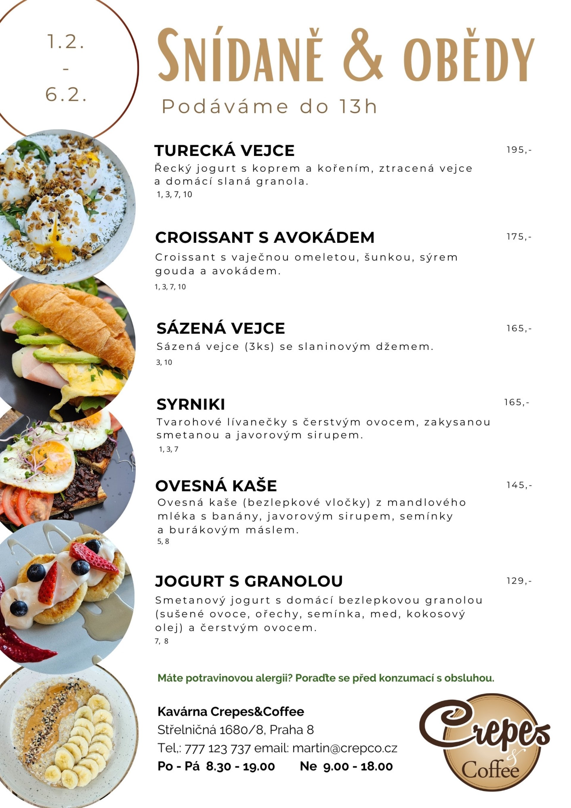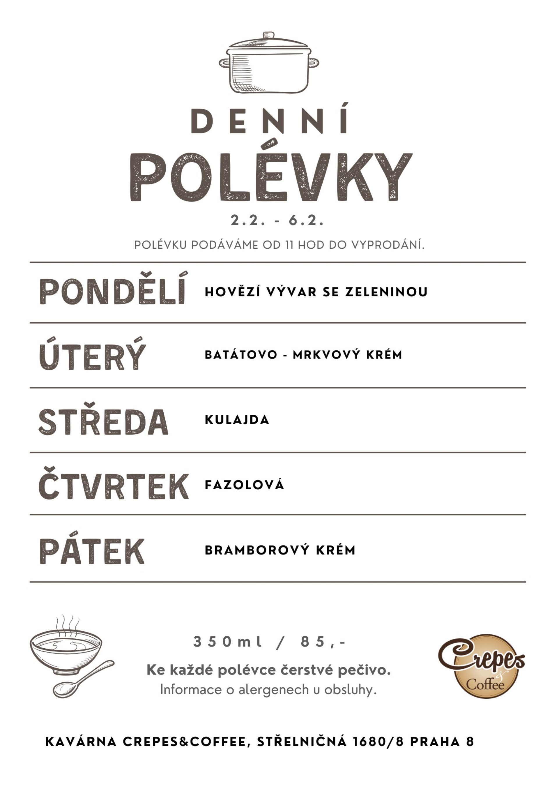 Snídaně, denní polévky 1.2. - 6.2.2026