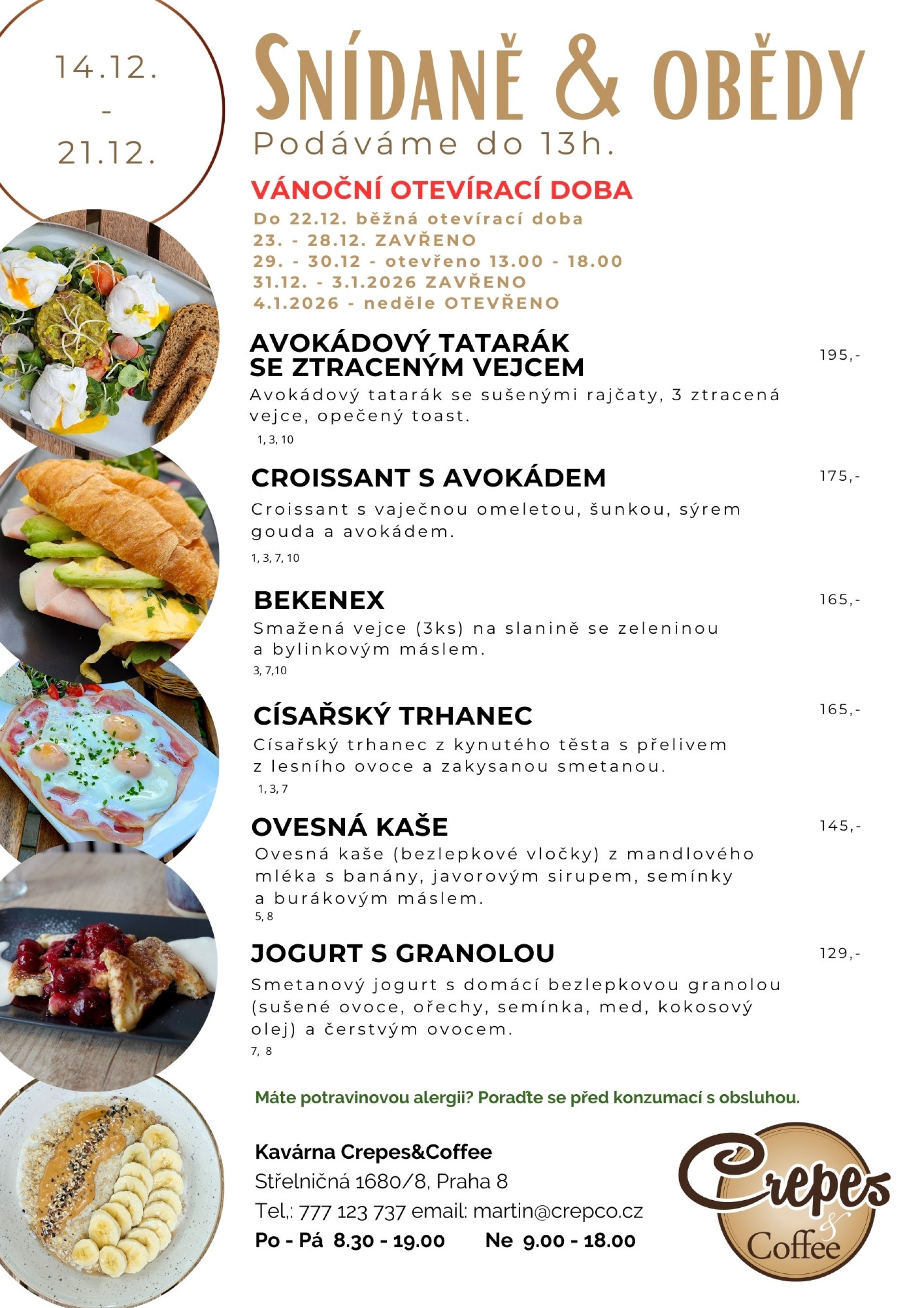 Snídaně, denní polévky 14.12. - 21.12.2025