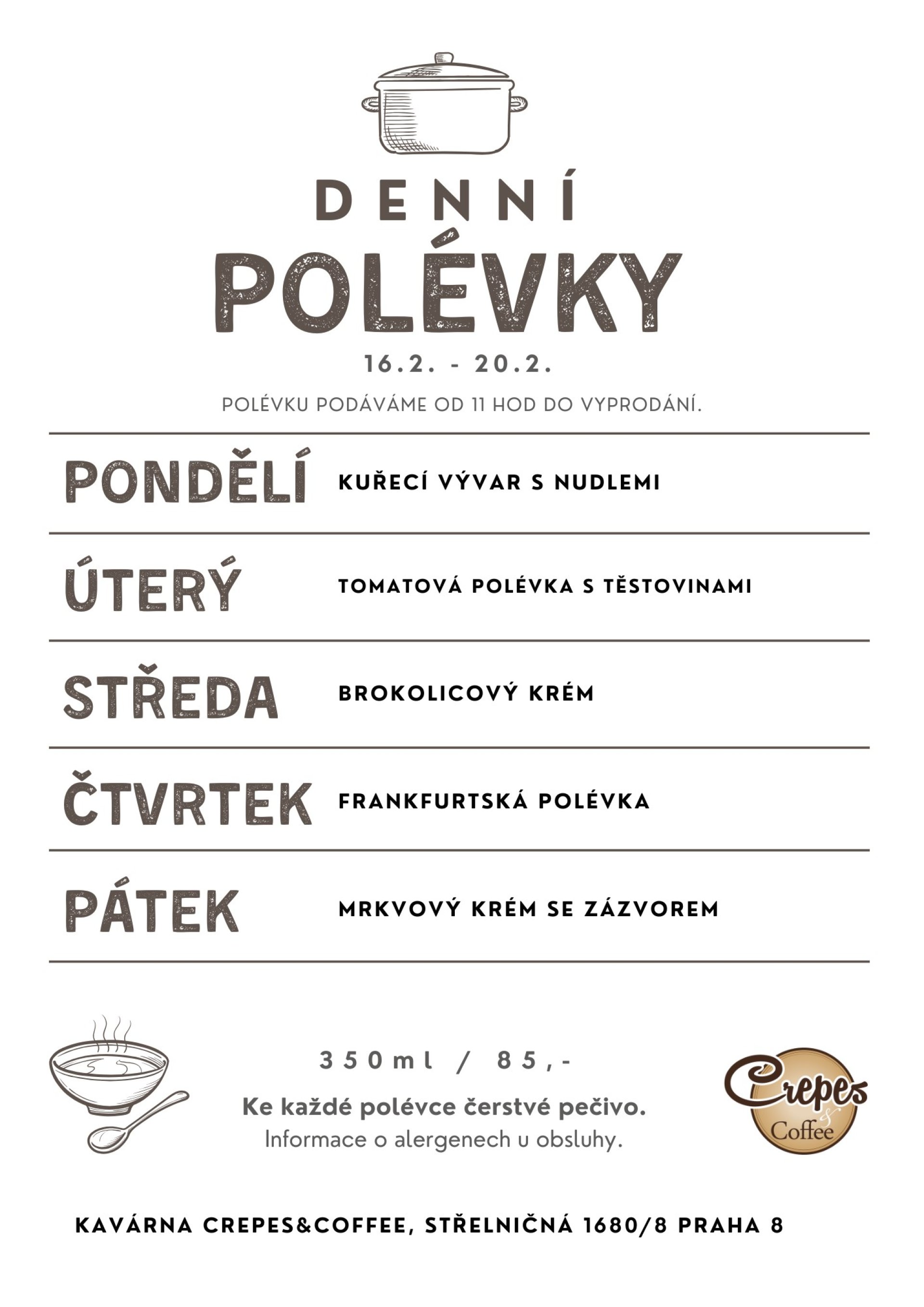 14.2. Sobota 07:34Každý týden pro vás připravujeme nové snídaňové menu včetně denní polévek.