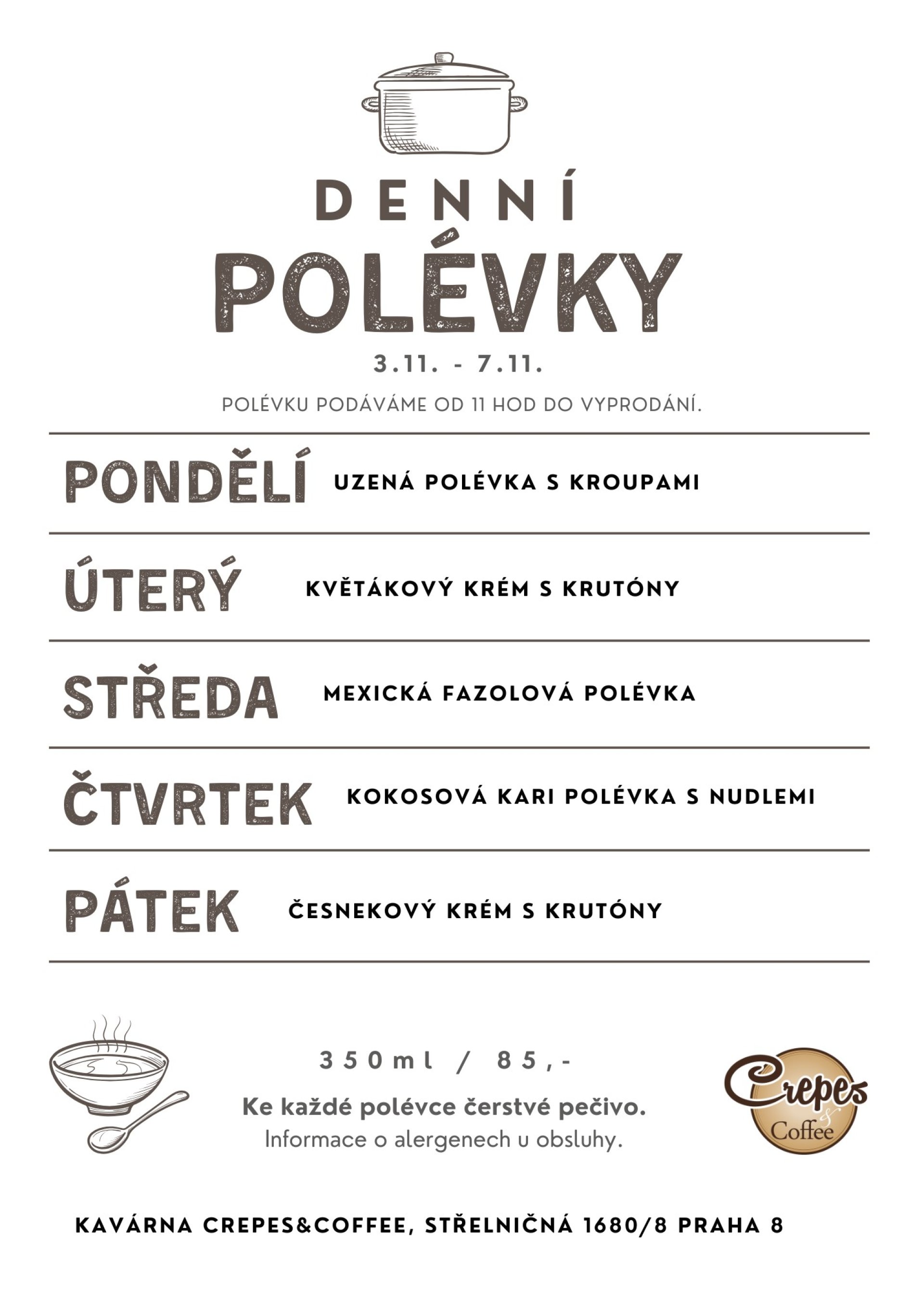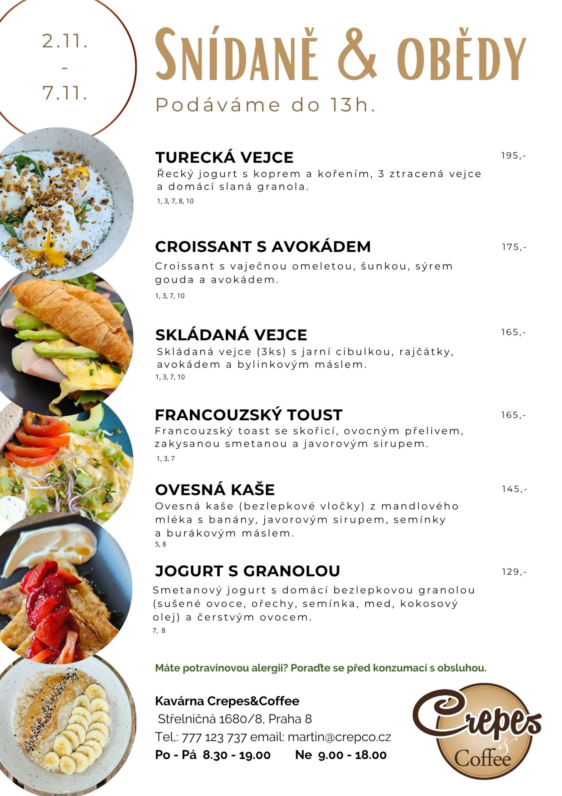 Snídaně, denní polévky 2.11. - 7.11.2025