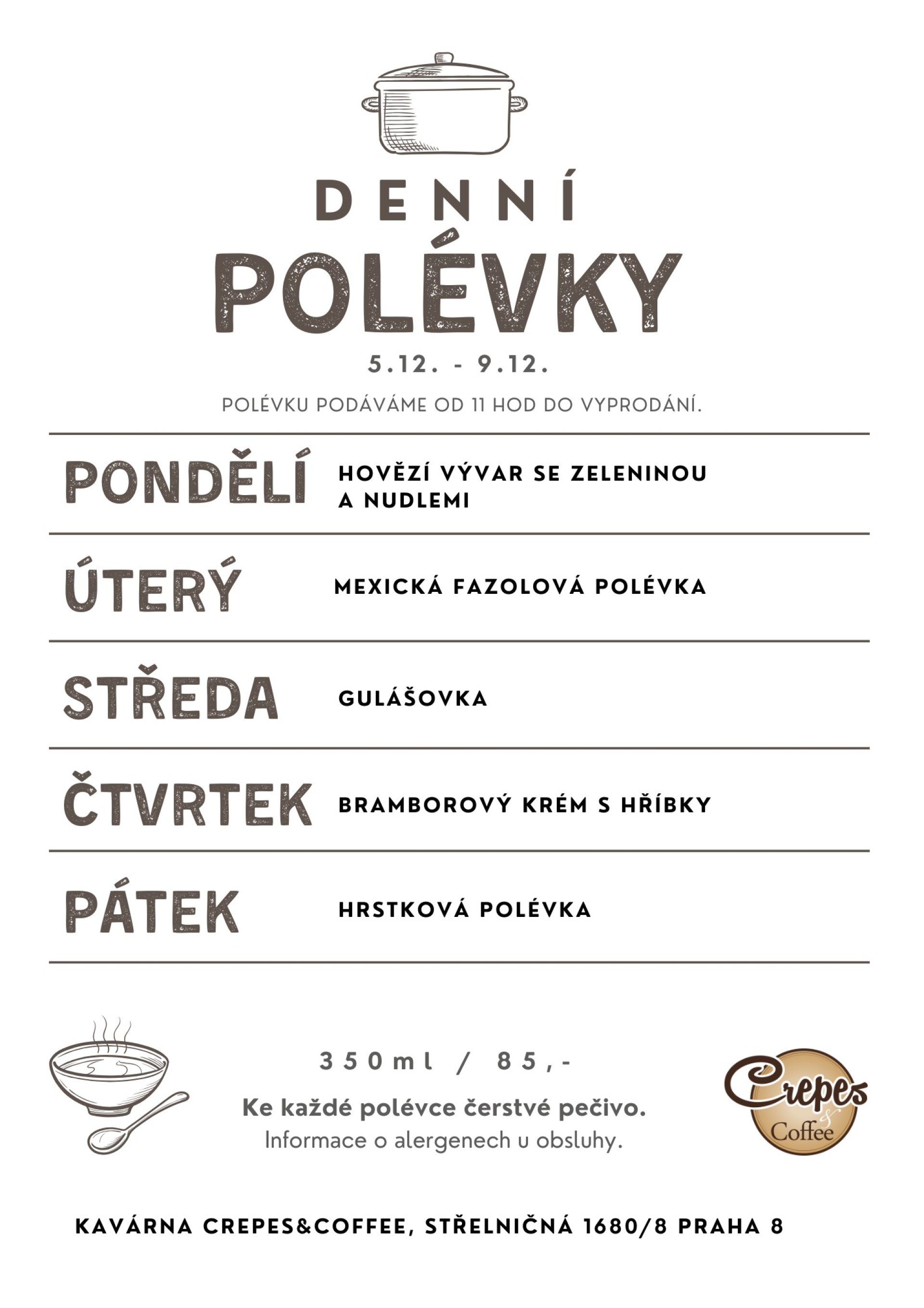 Snídaně, denní polévky 4.1. - 9.1.2026